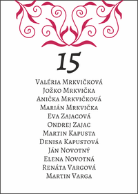 Kartičky zasadacieho poriadku podľa Vami dodaného zoznamu mien. Dodávame iba samostatné kartičky.