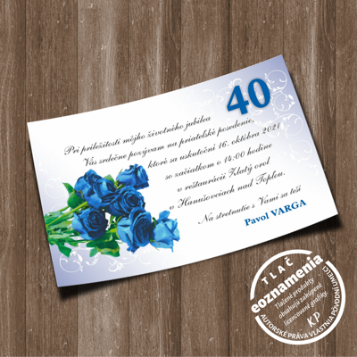 Číslo označujúce vek je možné upraviť podľa veku oslávenca, teda ako pozvánku na narodeniny k 40-tke, 45-tke, 50-tke, 55-tke, 60-tke, 65-tke, 70-tke, 75-tke, 80-tke a pod., ale aj ako povánku k ľubovoľným, napr. 33-tim narodeninám.