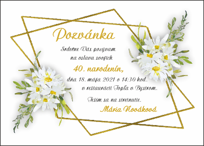 Pozvánky sú dodávané bez obálky. Rozmer pozvánky je cca 14 cm x 10 cm.